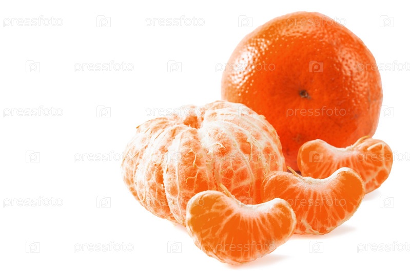 Плоды мандарина на белом фоне