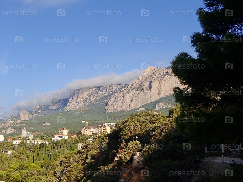 Вид на знаменитые зубцы горы Ай-Петри. Высота 1234 м. Силуэт горы завершает линию живописного амфитеатра от моря до вершины