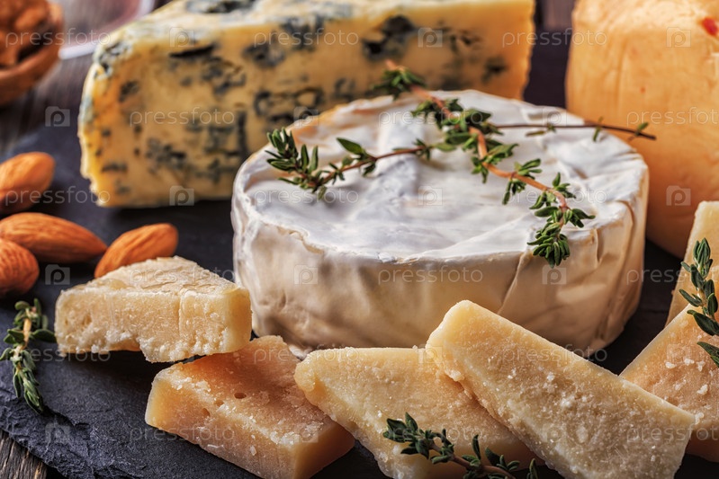 Сыр, орехи, мед и красное вино на деревянном фоне