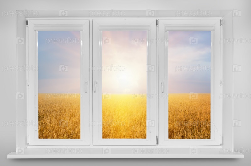 Вид из окна. Закат над пшеничным полем
