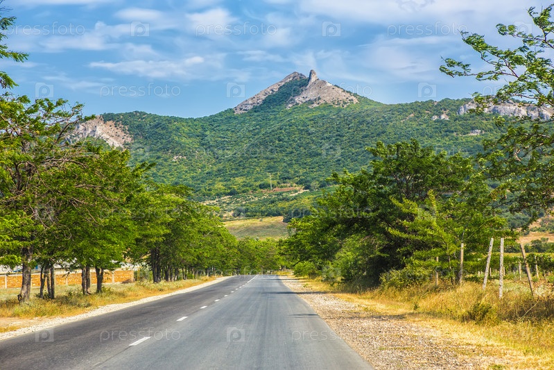 Летний пейзаж шоссе в гористой местности
