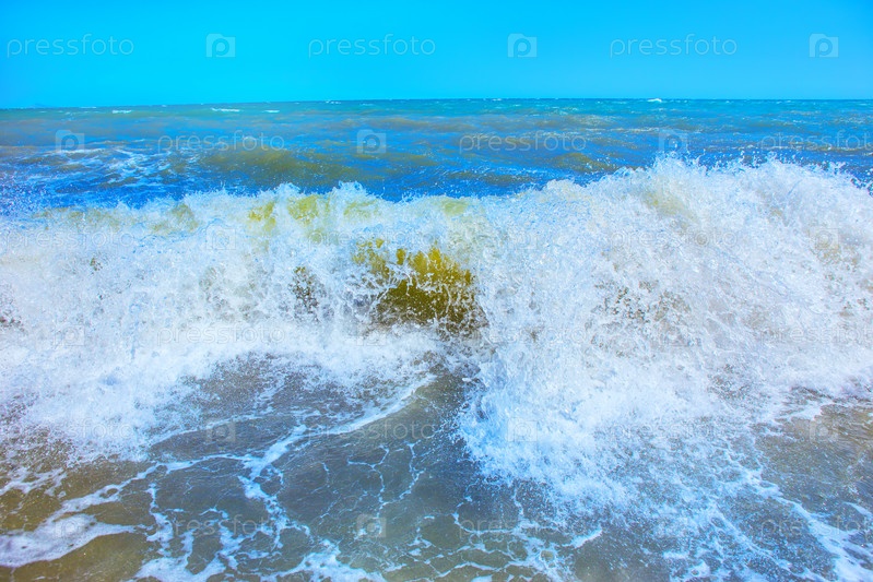 Морские волны накатывают на берег с пеной и морскими брызгами