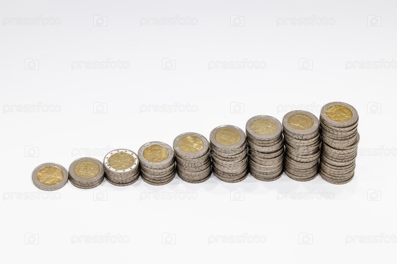 Стек восходящих монет. Бизнес, богатство, успех, финансы, рост денег и концепция экономии денег