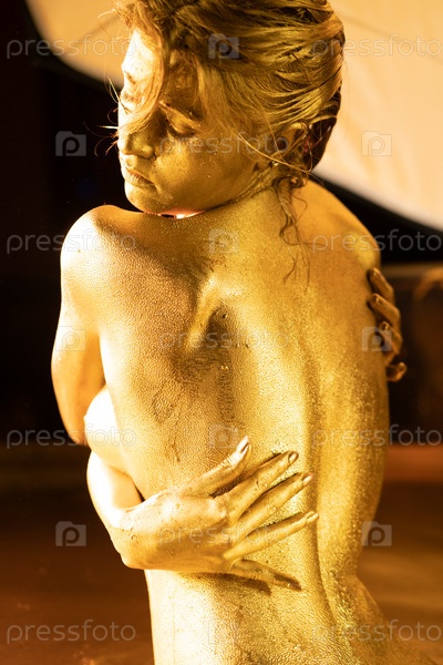 Молодая красивая женщина, окрашенная золотой краской