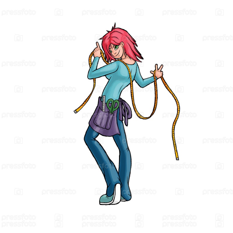 Девушка швея стоит с измерительной лентой
