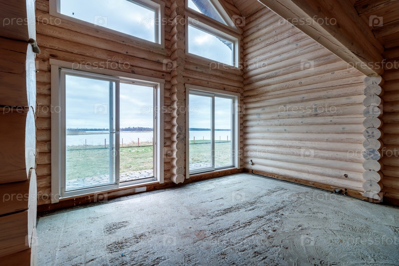 Двухэтажный деревянный коттедж изнутри в хвойно-еловом сосновом бору. Удивительный душераздирающий вид из панорамного большого окна дачного загородного дома