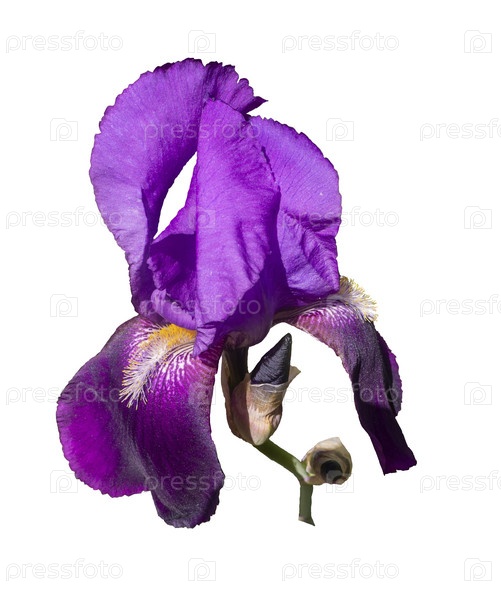 Крупный план красивого фиолетового цветка ириса на белом фоне