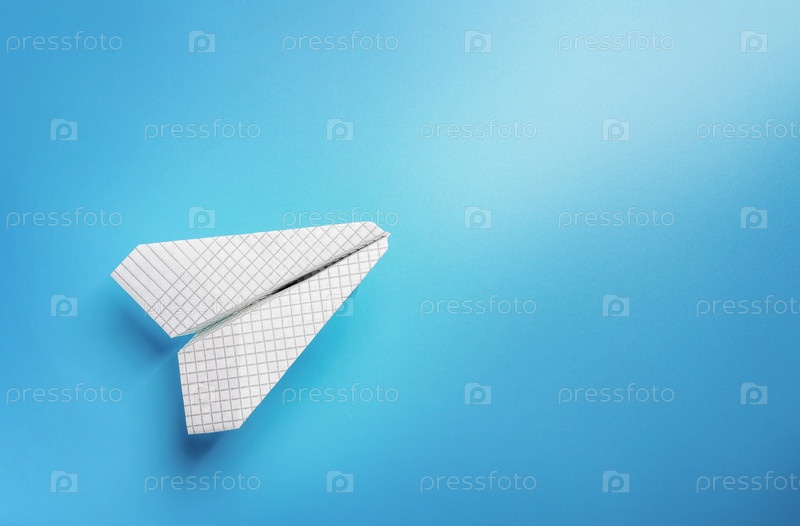Бумажный самолетик на синем фоне. Концепция полета