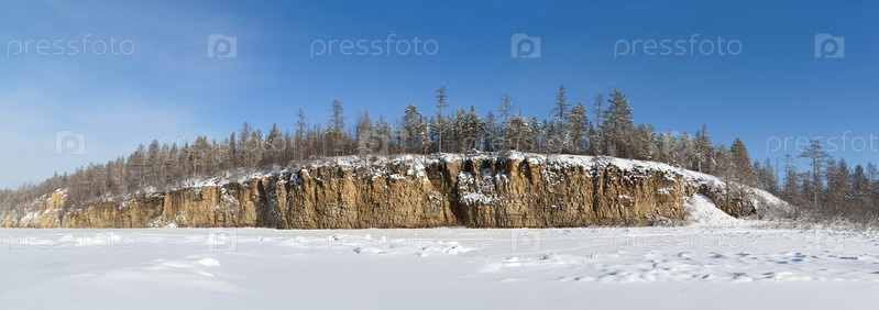 Зимний пейзаж со скалой