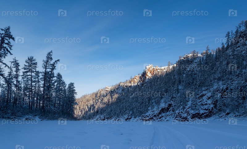 Зимний пейзаж со скалами