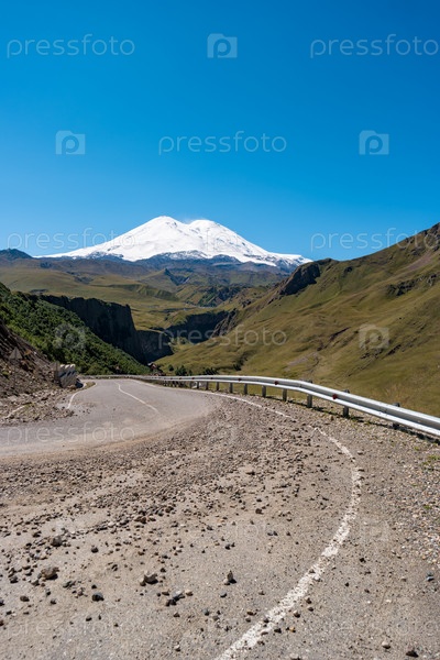 Вид на горную шпильку, ведущую к Эльбрусу. Россия, Кавказские горы