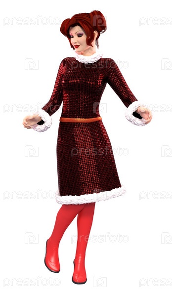 3D Девушка в праздничном красном рождественском платье