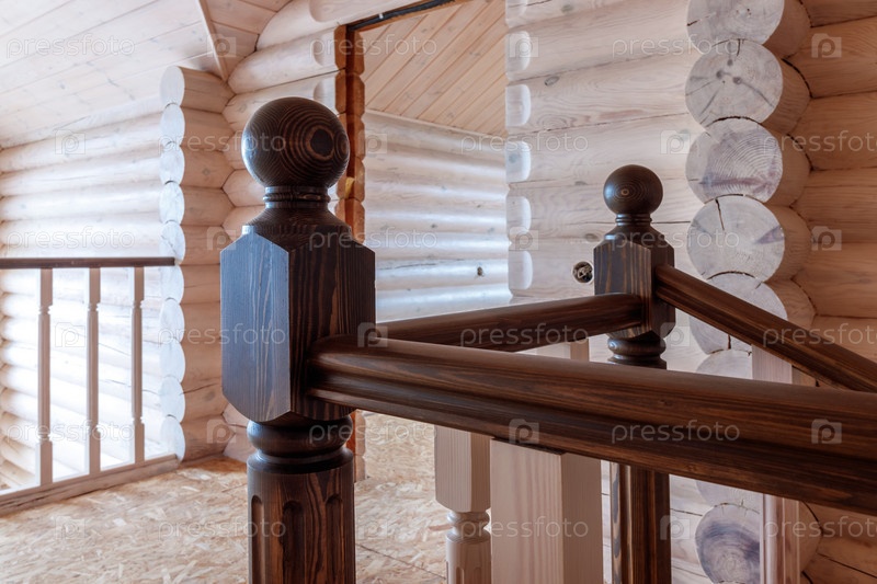 Элемент деревянной внутренней лестницы. Деревянная балясина крупным планом