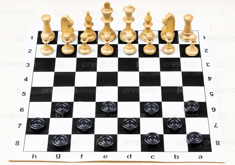 Шахматные и шашечные фигуры в стартовых позициях