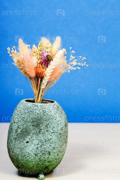 Ваза с букетом засушенных растений на столе