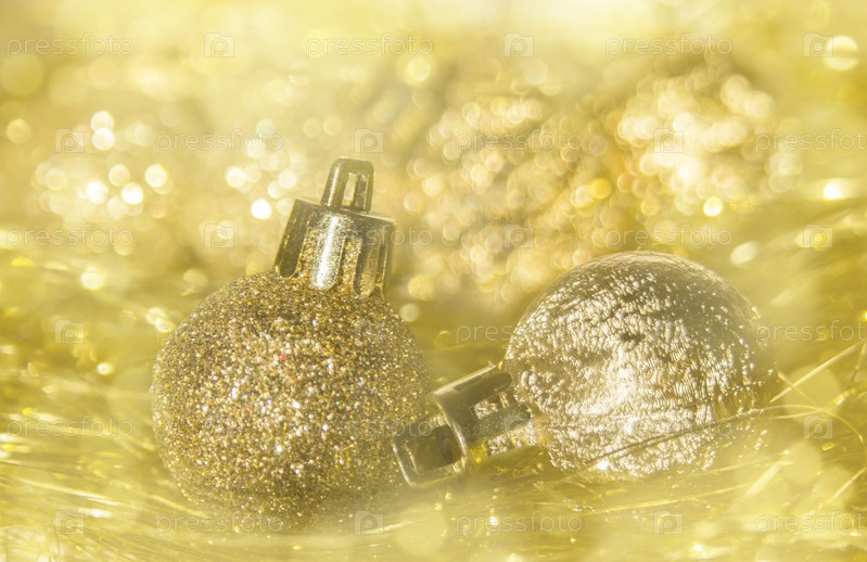Золотые рождественские безделушки и мишура и фон боке