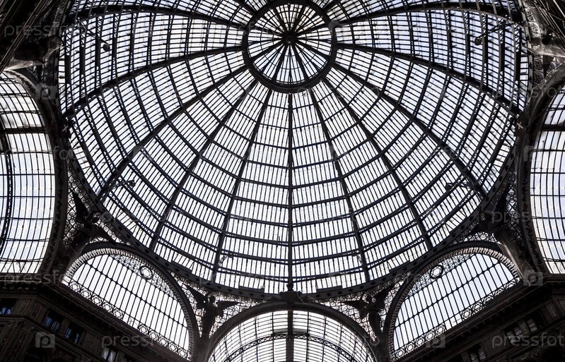 Неаполь, Италия - 24 августа 2015 г.: часть стеклянной крыши купола в галерее Виктора Эммануиля II