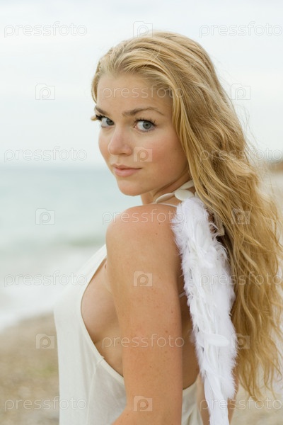 Девушка на пляже с ангельскими крыльями