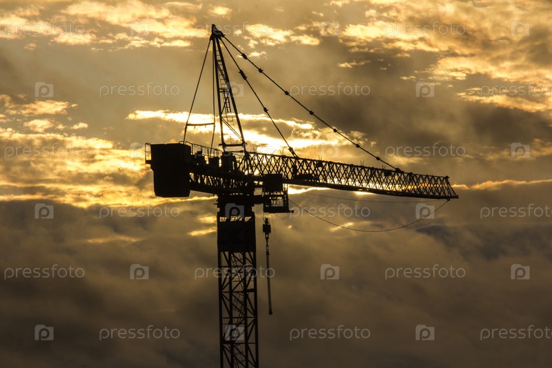 Силуэт башенного крана на фоне закатного неба
