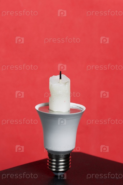 Лампочка с огарком свечи. Глобальная экология, Международный день энергосбережения или концепция "Час Земли"
