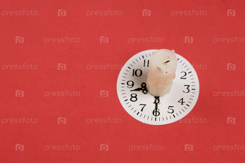 Огарок свечи и циферблат со стрелками на 20:30. Глобальная экология, Международный день энергосбережения или концепция "Час Земли". На коралловом фоне