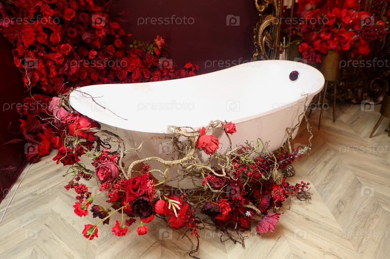Романтический декор с винтажной ванной и цветами