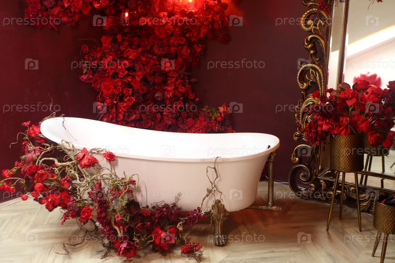 Романтический декор с винтажной ванной и цветами