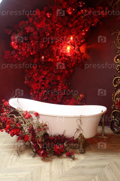 Романтический декор с винтажной ванной и цветами