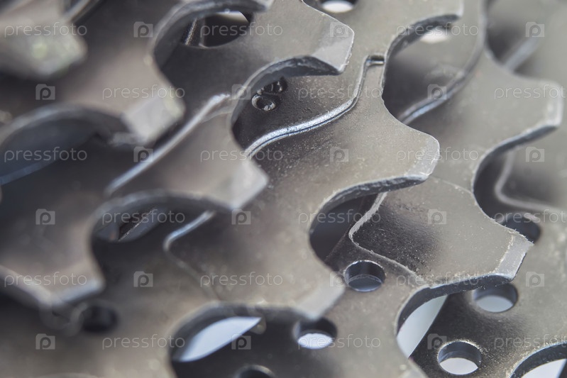Зубья велосипедной кассеты на макрофото. Выборочный фокус