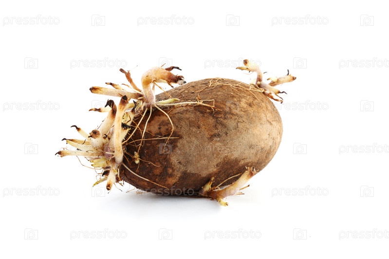 Картофель с ростками на белом фоне