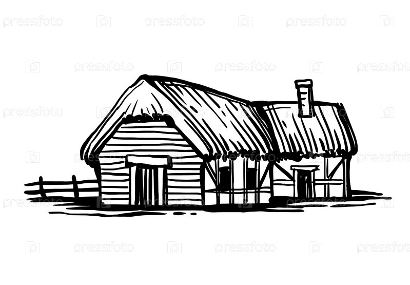 Чернильный эскиз старого европейского загородного дома