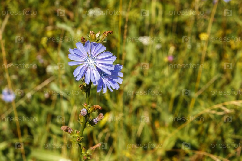 Центавр голубой в природе. Синий цветок растет на зеленом лугу