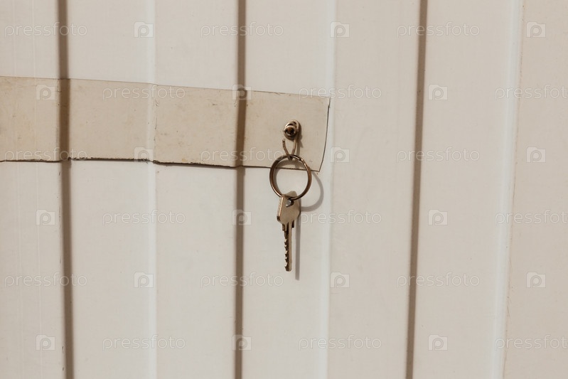 Ключ висит на крюке на металлическом заборе