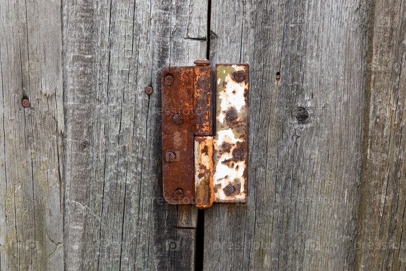 Старая ржавая металлическая дверная петля. Дверная петля на деревянной двери