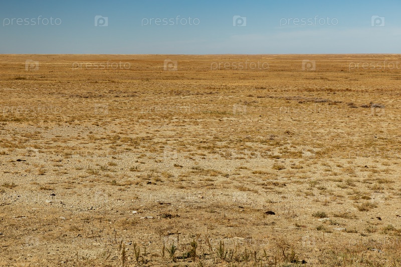 Степь в Казахстане, пустынный красивый пейзаж, сухая трава
