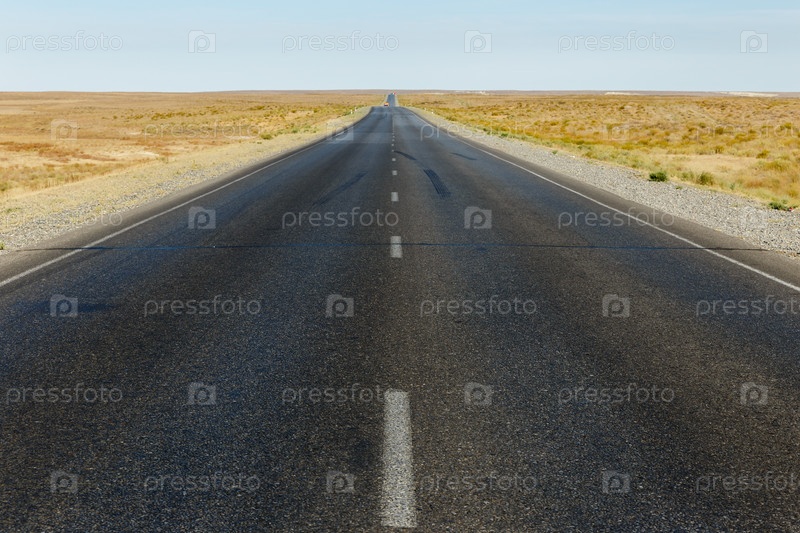 Асфальтированная дорога в степи Казахстана, Аральский район