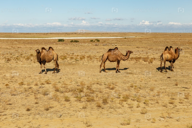 Двугорбые верблюды в степях казахстана Аральского района Кызылординской области