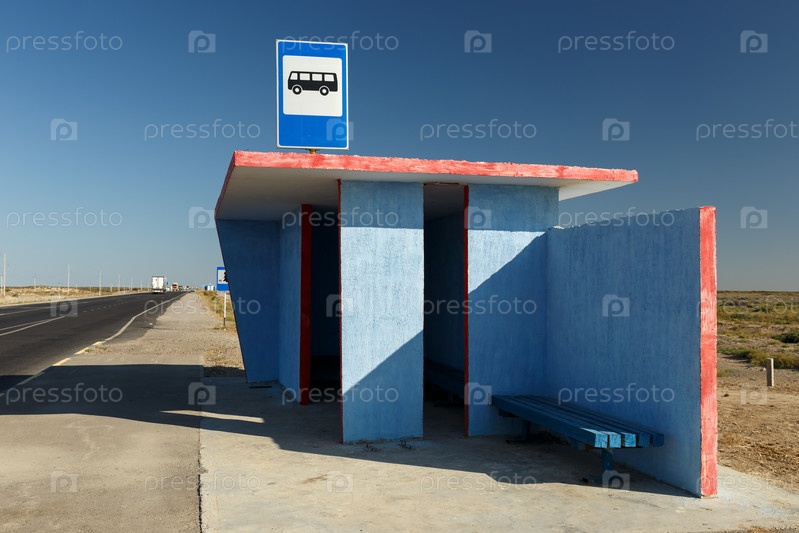 Пустая автобусная остановка, место ожидания автобуса, Казахстан