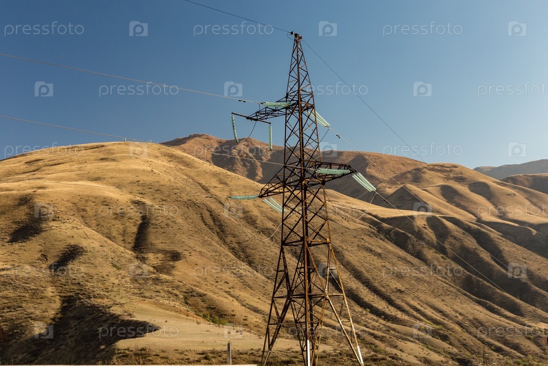 ЛЭП высокого напряжения в Кыргызстане. опора электропередач в горах