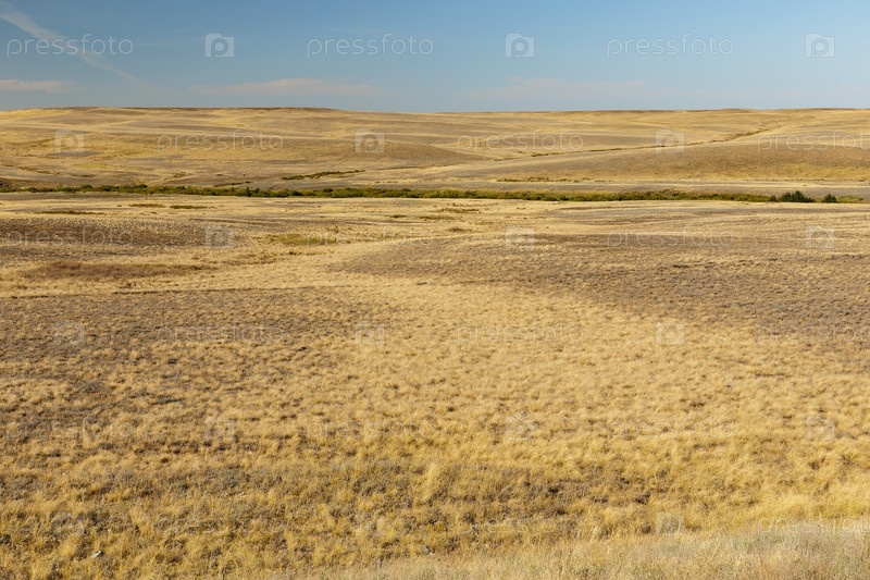 Сухая трава в степи. пустая степь в Казахстане, пейзаж