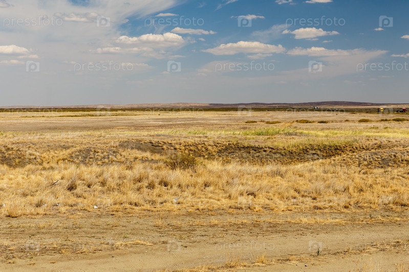 Пустынный пейзаж, степь в Казахстане, сухая трава