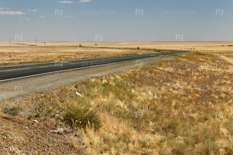 Автомагистраль Е38 в Казахстане. асфальтированная дорога через степь