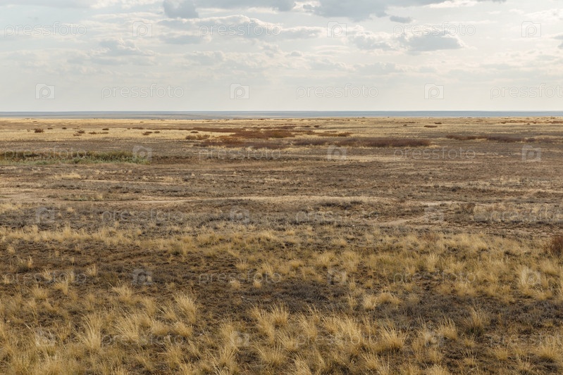 Степь в Казахстане, сухая трава в бескрайней степи. осенний пейзаж