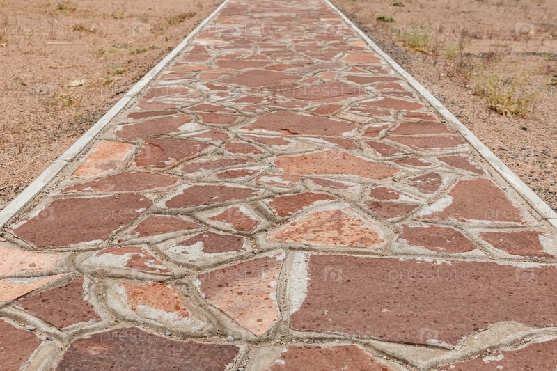 Каменная дорожка, дворцовый комплекс Акыртас в Казахстане. Дорожка из красного камня на территории комплекса