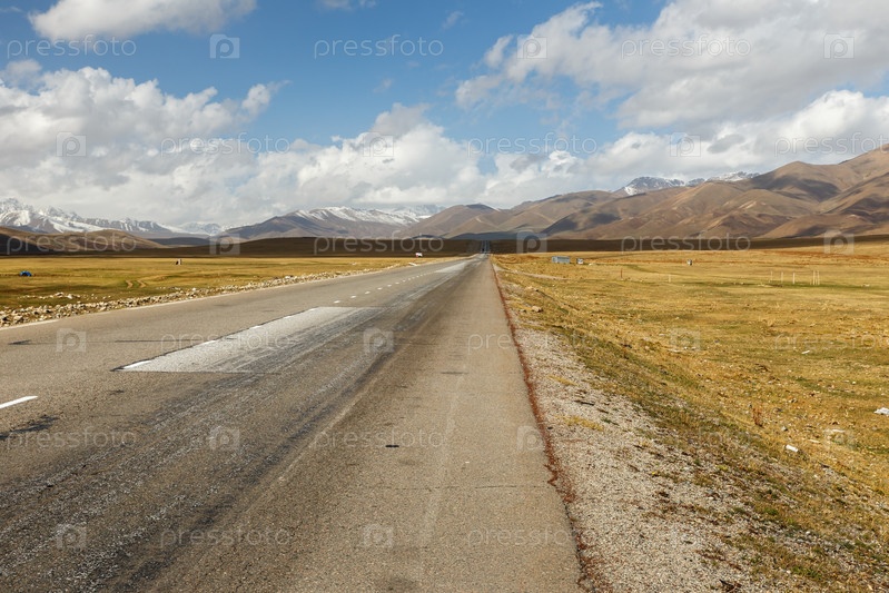 Асфальтированная дорога, шоссе Бишкек Ош в Суусамырской долине Кыргызстана