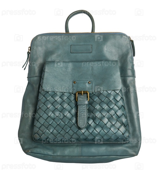 Современная стильная зеленая женская кожаная сумка-рюкзак на белом фоне
