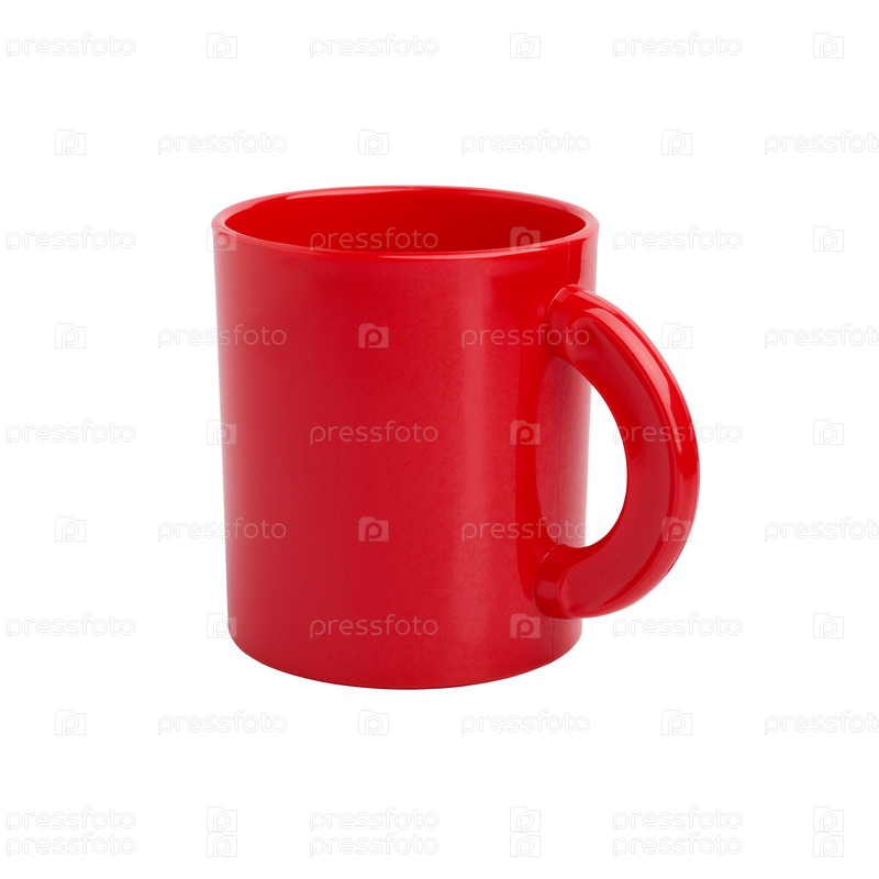 Пластиковая красная кружка на белом фоне
