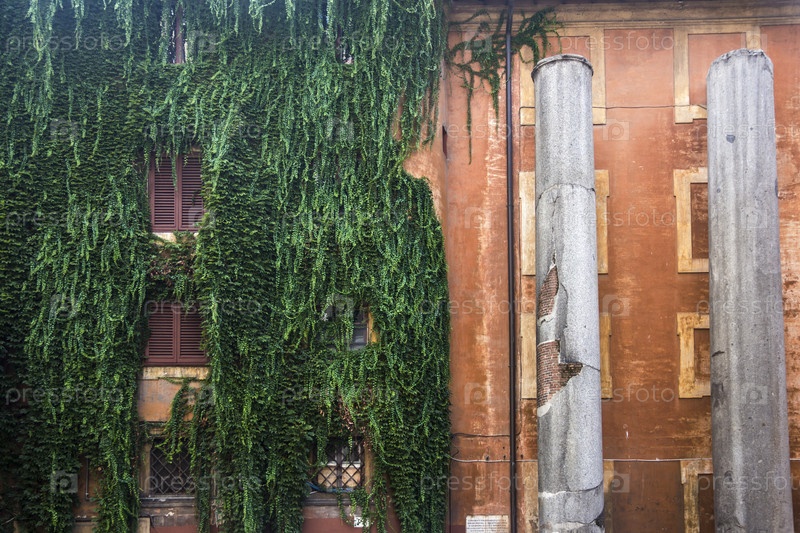 Покрытые плющом стены и древние колонны римской церкви, фон, Рим, Италия