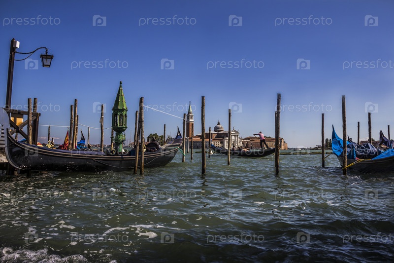 Гондолы и Сан-Джорджо-Маджоре, вид с площади Сан-Марко в Венеции, Италия