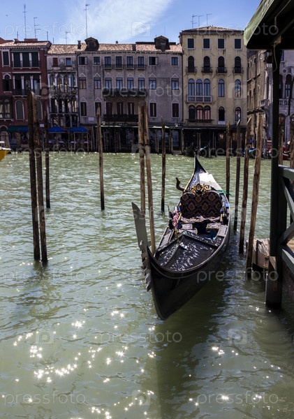 Гранд-канал в один из летних дней, швартовка гондол у причалов, Венеция, Италия